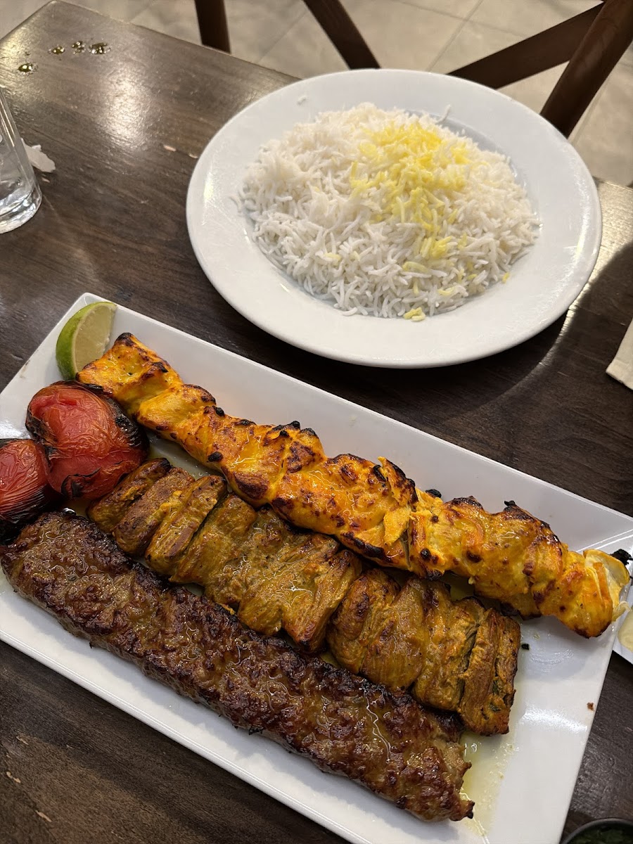 For those seeking Iranian cuisine or kabobs, this establishment is the ideal choice. It has become our preferred destination whenever we experience such cravings. My husband and I visited for a late lunch on New Year's Day around 3 PM. Upon our arrival, the restaurant was moderately busy, but by the time we departed, it was completely full. We have a deep appreciation for this family-run restaurant, where it is evident that they invest their passion and dedication into both their culinary offerings and customer service. I opted for baghali polo, while my husband chose the barg and kubideh combination. The dishes truly reflect authentic home cooking, rich in flavor. We commenced our meal with Mast Kheyer, a delightful combination of yogurt and cucumbers, alongside Olivieh, a savory potato salad featuring pulled chicken. If you have yet to experience this appetizer, it is highly recommended. The baghali polo with lamb shank was exceptional. The meat was so tender that it effortlessly fell off the bone, requiring no knife for cutting. It was served atop a generous portion of basmati rice accompanied by fava beans and dill. This dish ranks among my favorites in Iranian cuisine, with the aromatic dill enhancing the rice and complementing the lamb beautifully. The barg and kubideh, paired with grilled tomatoes and saffron basmati rice, were equally impressive. The meat was succulent, juicy, and immensely satisfying. The bread, served with chutney and butter, was simply divine. I found it impossible to resist requesting an additional basket. We finished our meal with the Saffron ice cream. So creamy and delicious. The service was outstanding, with staff consistently checking in to ensure our satisfaction with the food and overall experience. Their genuine care for customers is palpable. Not only is the food exquisite, but the service is also exemplary. We take great pleasure in supporting this establishment, which also serves as our preferred catering option. If you have yet to visit, I highly recommend giving them a try; you will not be disappointed.